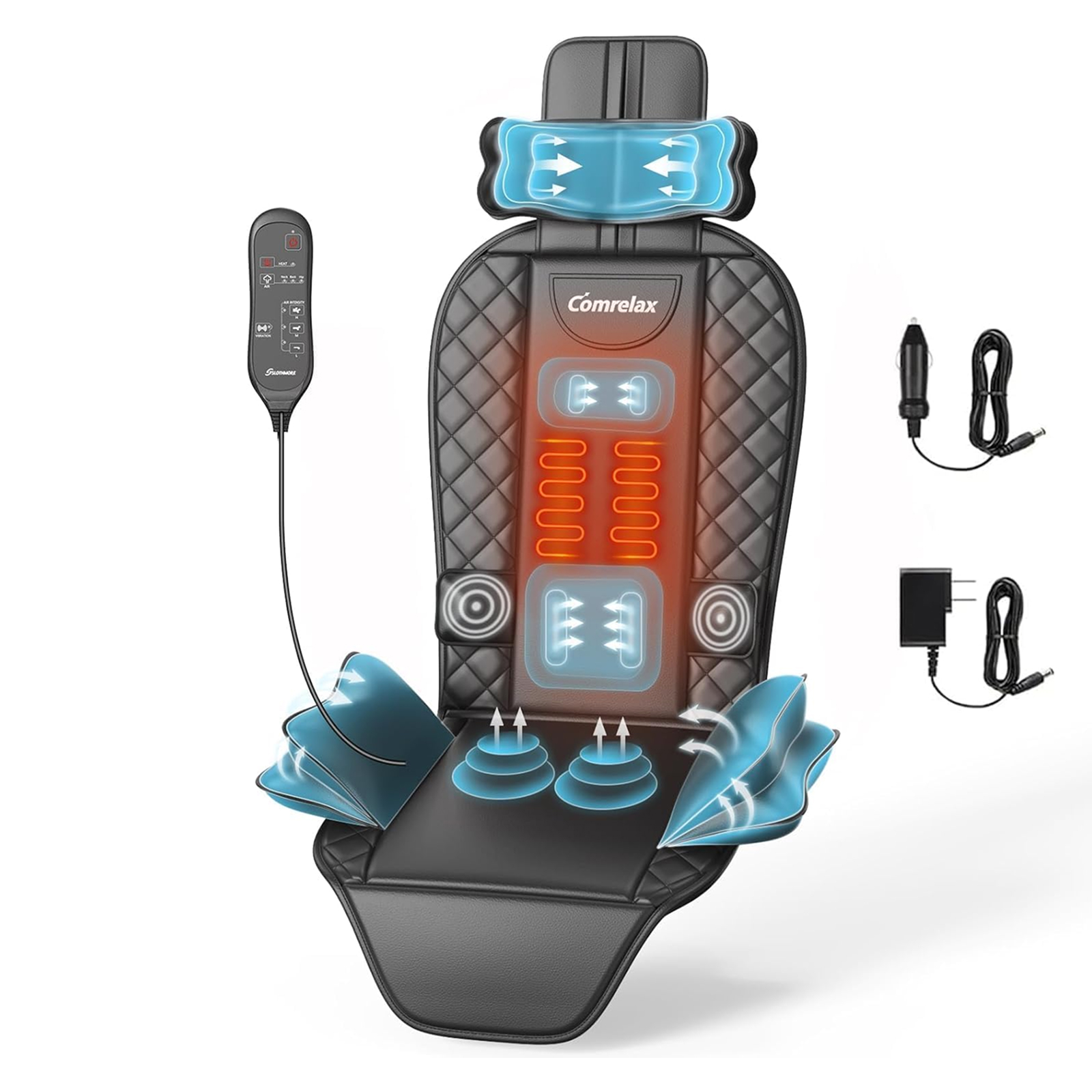 The comrelax Back Massager stands out with its full-back coverage, targeting not just the lumbar region but also the neck and thighs. Its dual vibrating motors and multiple massage nodes provide a comprehensive relief experience, ideal for office workers or long-distance drivers.