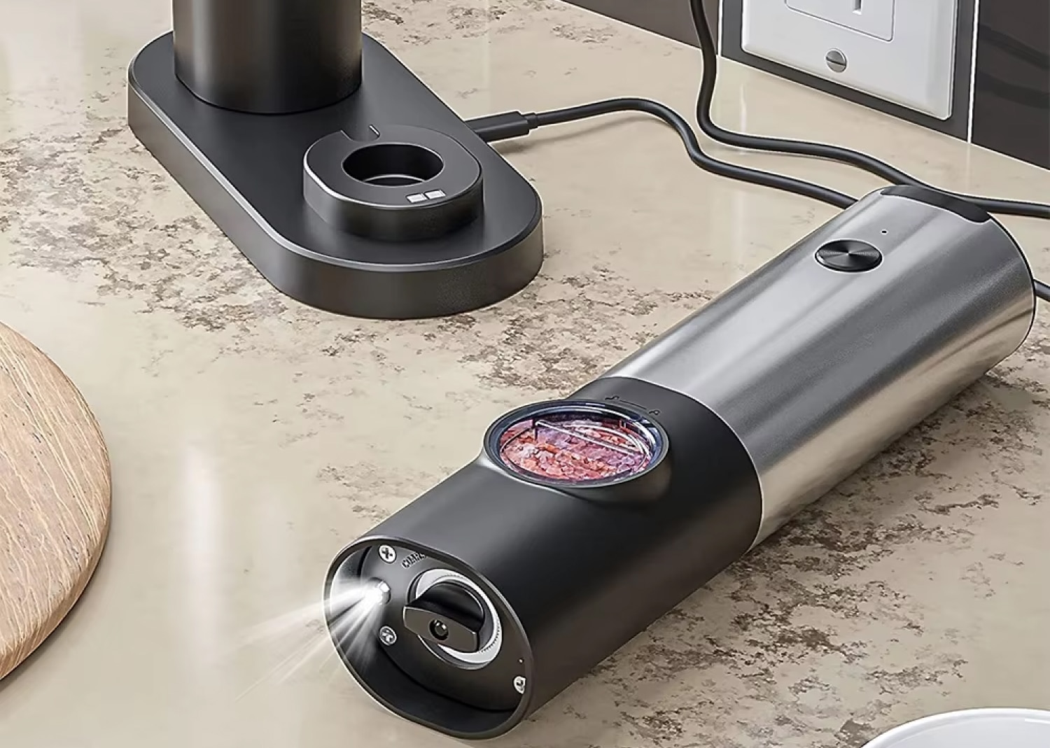 Its five adjustable coarseness levels (from extra fine to extra coarse) provide unparalleled control over seasoning texture, allowing you to customize flavors for everything from delicate sauces to hearty steaks. The built-in LED light ensures perfect visibility even in dim kitchens, preventing over-seasoning mishaps. 🔦