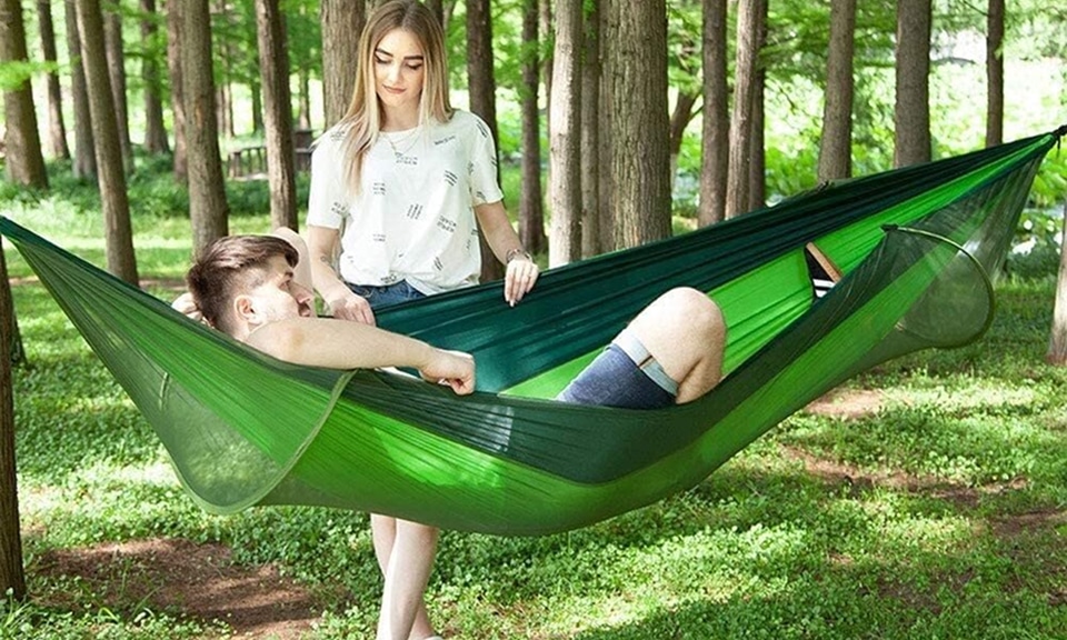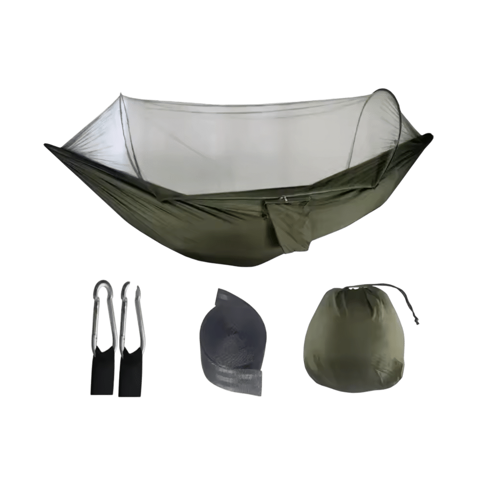 • Quick setup anywhere: You can set up between trees in minutes without needing flat ground or clearing space like traditional tents.
