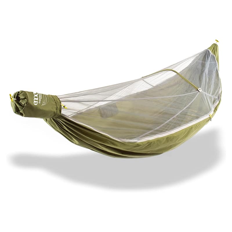 The ENO Camping Hammock stands out with its extended 10-foot design, providing ample space for comfortable lounging or sleeping. Its structural ridgeline ensures optimal sag and tension, making it one of the most stable hammocks in its class.