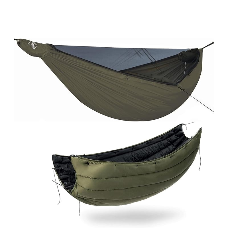 The included DuPont Sorona insulated underquilt provides exceptional warmth in 35-50°F conditions, solving the common problem of cold backs in hammock camping. The recycled nylon fabric demonstrates Onewind's commitment to sustainability.