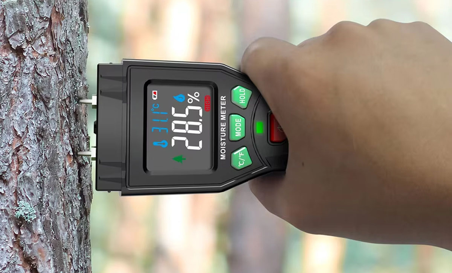 Measures moisture levels within ±2% accuracy across 0%-60% range for both hardwood and softwood.