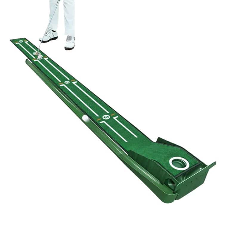 This mat’s magnetic ball return system offers reliable performance, though it may require occasional adjustment. The clear marking system and aiming lines help develop muscle memory and consistent stroke patterns.