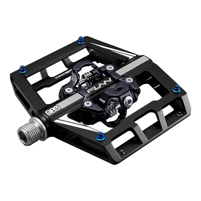 The Funn MTB Clipless Pedals clipless pedals target versatile mountain bike applications including enduro, freeride, trail riding, and downhill through their SPD-compatible double-sided mechanism that offers crisp engagement and quick release functionality. The large supportive platform accommodates riders transitioning from flat pedals to clipless systems, while the included SPD-compatible cleats provide immediate setup convenience for new users seeking reliable performance.