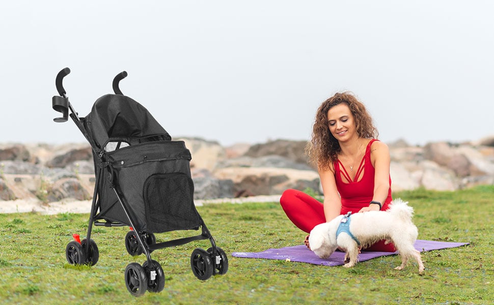 The detachable cup holder and thoughtful storage pouch address practical needs during outings, making this the perfect companion for pet owners who value both functionality and convenience in their everyday adventures with their furry family members.