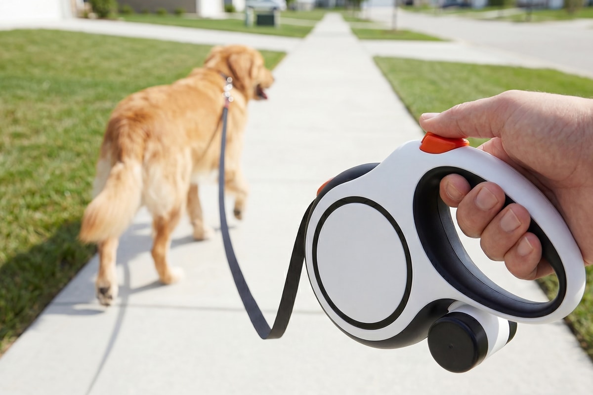 Retractable dog leashes are specialized walking tools that feature a spring-loaded cord or tape housed within a plastic handle.