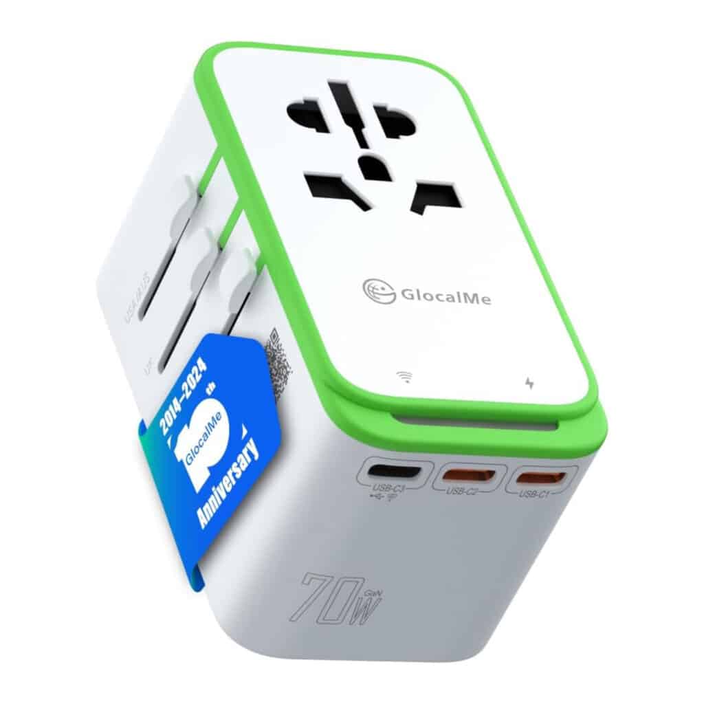 The GlocalMe Universal Travel Adapter brings a unique proposition to the table, functioning not just as a travel adapter but also as a multi-functional power strip. This versatility makes it an excellent choice for those who want a device that’s useful both at home and on the road.